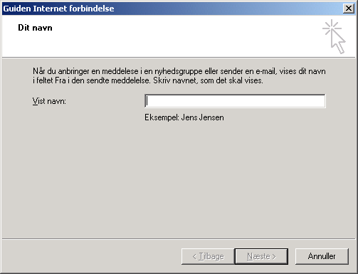 Skriv dit navn i feltet "Vist Navn" og tryk "Næste"