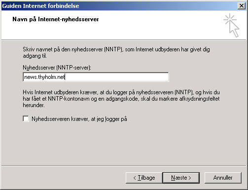 I feltet "Nyhedsserver (NNTP server)" skriver du "news.thyholm.net"
